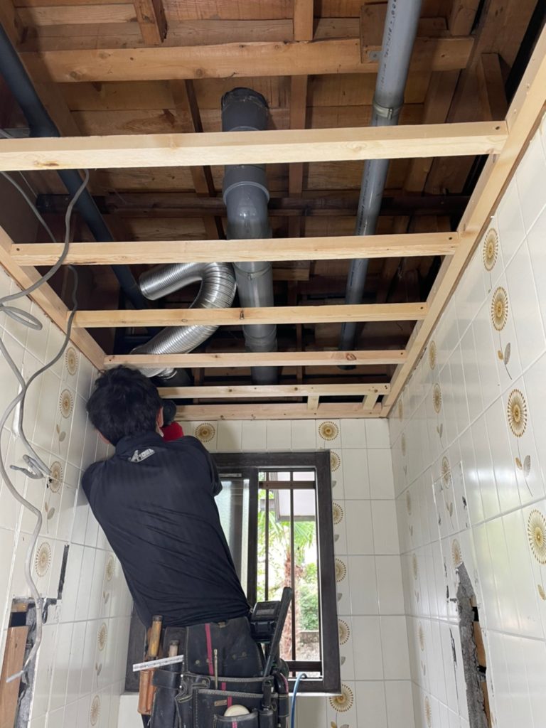 下地が出来たのでクロスとクッションフロアを貼り、いよいよトイレの設置です