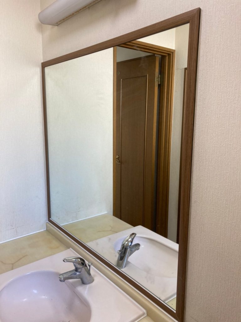 シンプルだった鏡に木枠がつきました♪。なんだか、とってもおしゃれになりました!