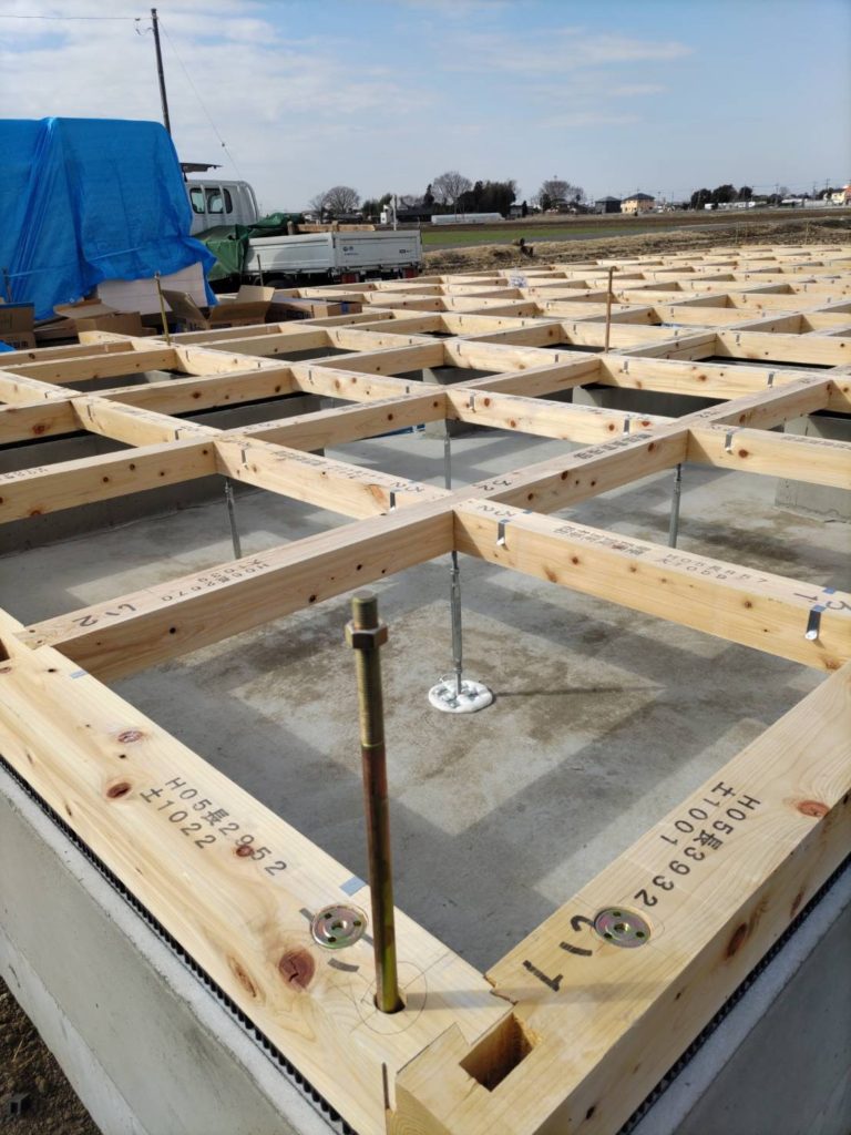 筑西市・K様邸新築工事⑥2022年3月7日 コンクリート立ち上がりの基礎部分と土台の木材の間にパッキンを挟みます。 アンカーボルトを利用して土台の木材をしっかりと設置していきます。 断熱材を敷き詰め、床合板を張ります。広くて気持ちいいですね~♪ カテゴリ:お知らせ/新着情報 進行中物件