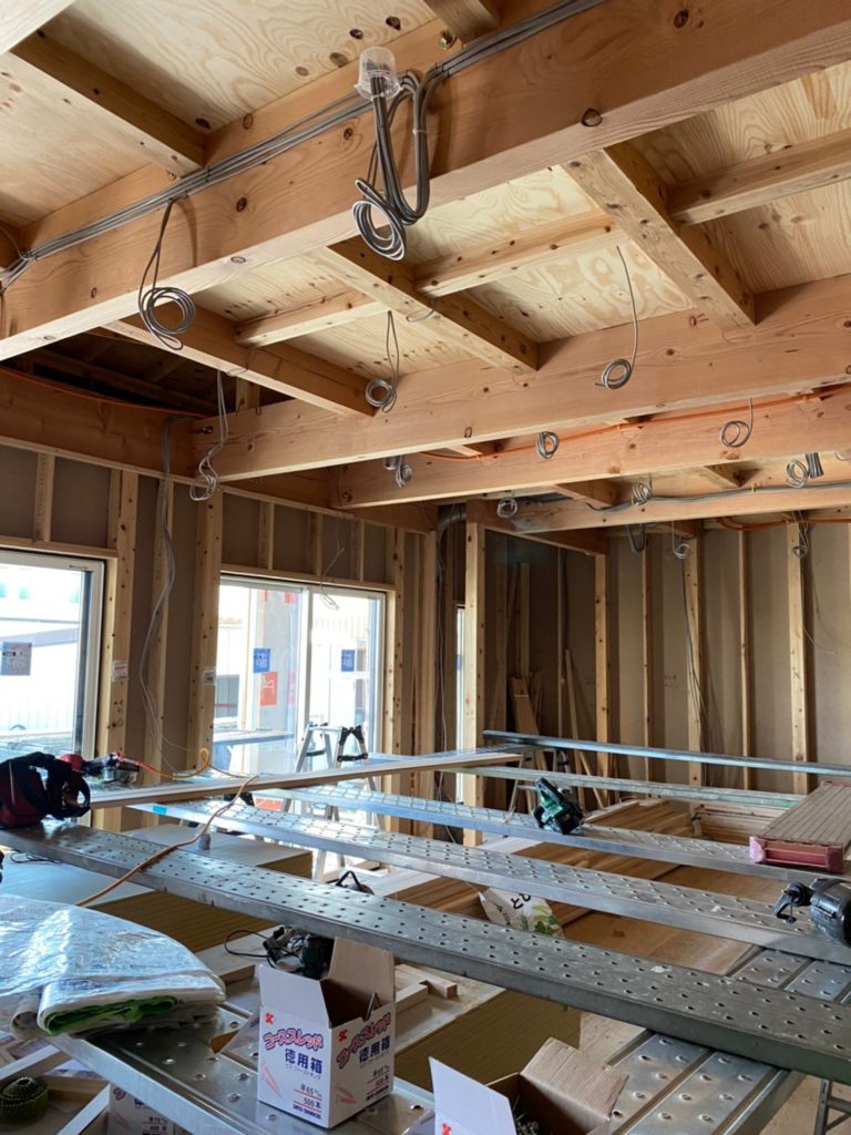 筑西市・T様邸新築工事⑩2022年4月11日 断熱材は天井部分の内側にも隙間なく詰めていきます☆ 石膏ボードをつける前に、家じゅうのスイッチやコンセントを設置します♪ カテゴリ:お知らせ/新着情報 進行中物件