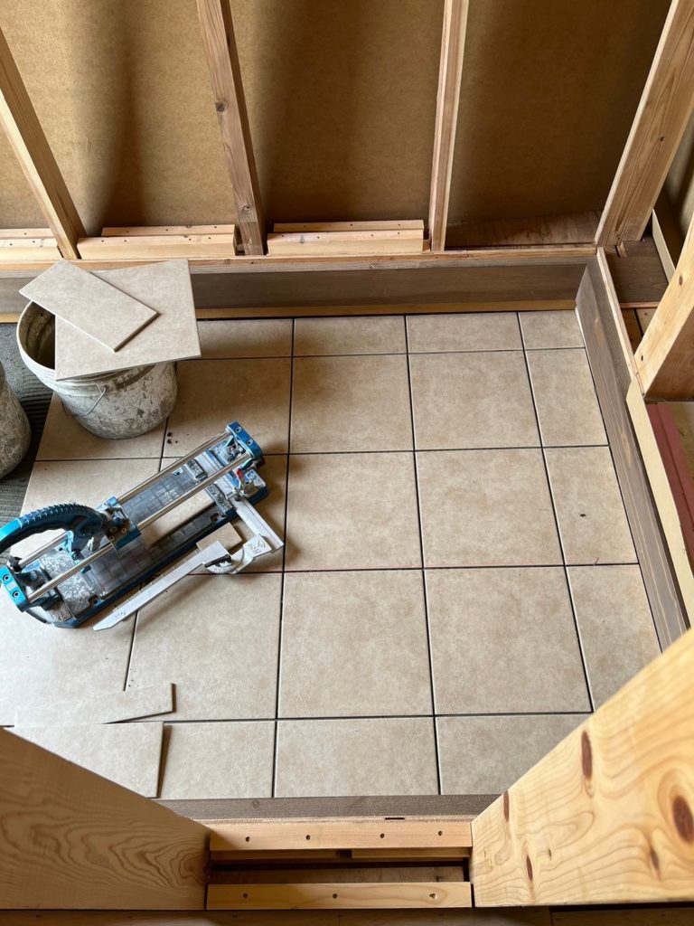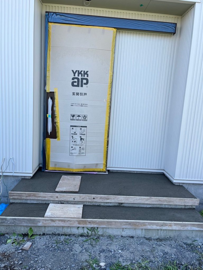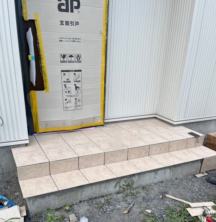 玄関のタイル工事が進みました☆