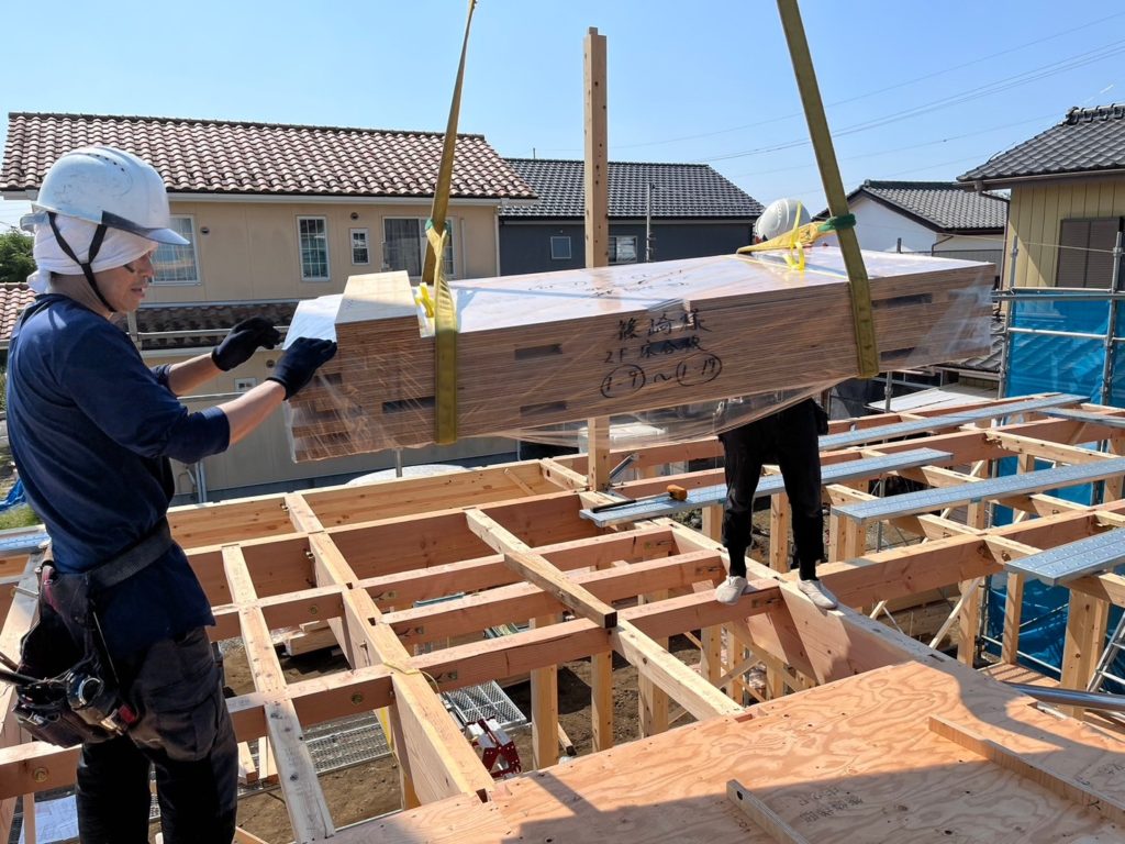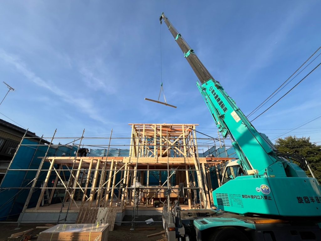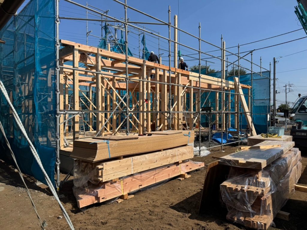 古河市・S様邸新築工事④2024年10月16日 いよいよ、建方工事です。木材が組み上がって行くのは、何度見ても感動します☆ 我らの大工社長も現場にて指揮を執ります! 安全第一で、心を込めて工事を進めさせていただきます!上棟おめでとうございます! カテゴリ:お知らせ/新着情報 進行中物件