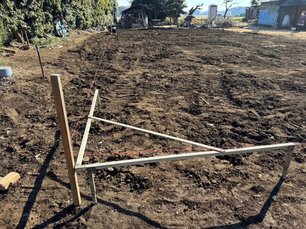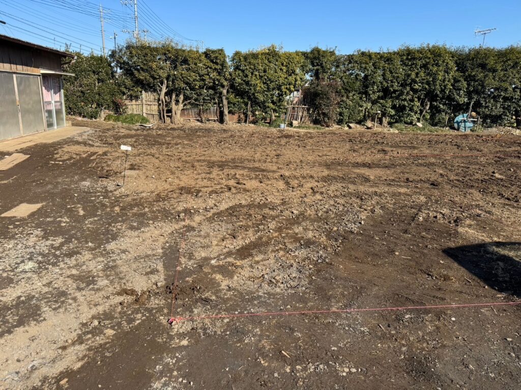 地盤調査が完了すると、建物が建つ正確な位置を示す地縄張りを行います。お施主様も建物の建つ面積のイメージがしやすくなりますね。