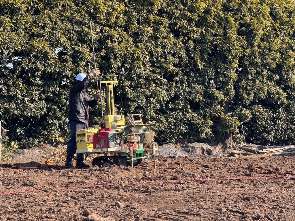 地盤調査の様子です。建物を建てる前に地盤の強度を確認します。