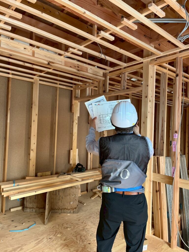 結城市・A様邸新築工事⑪2025年6月4日 JIO(日本住宅保証検査機構)の検査員が、設計施工基準に基づく検査をします。検査では建築士の資格を持ったJIOの検査員が、構造耐力上主要な部分と雨水の浸入を防止する部分について細かくチェックします。 カテゴリ:お知らせ/新着情報 進行中物件