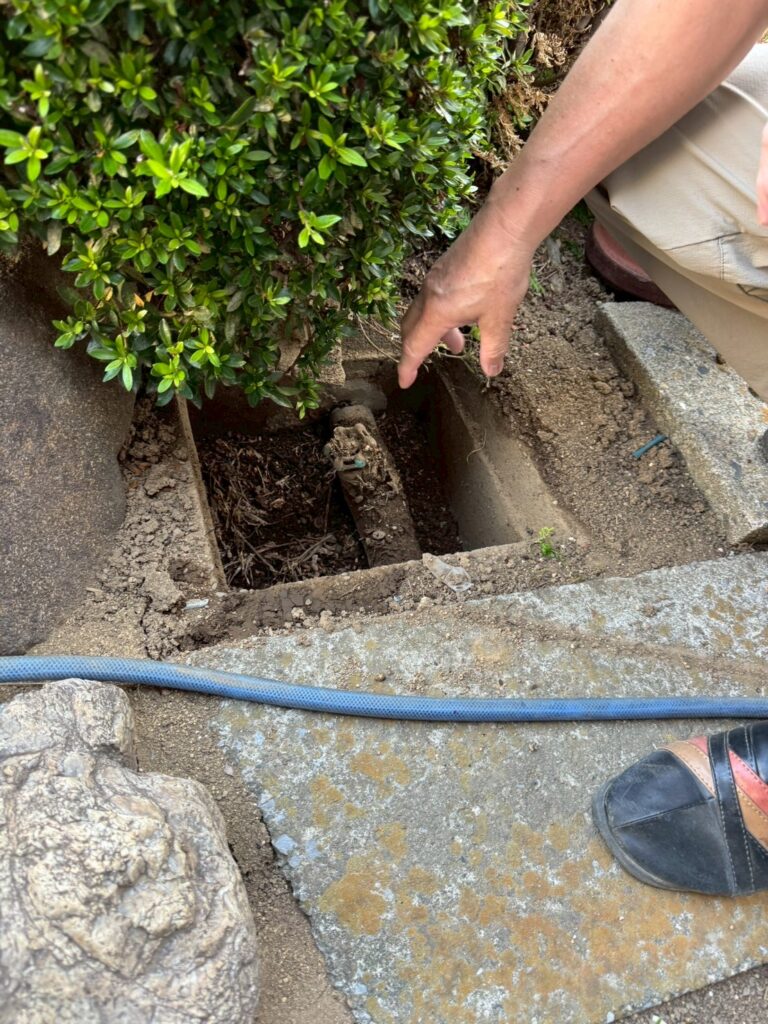 地面に埋もれていた所も、コンクリート桝で囲う事で、土や落ち葉などから守ってくれます