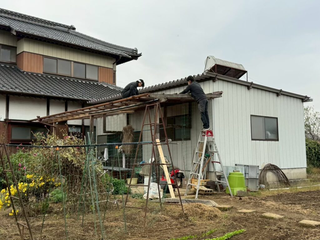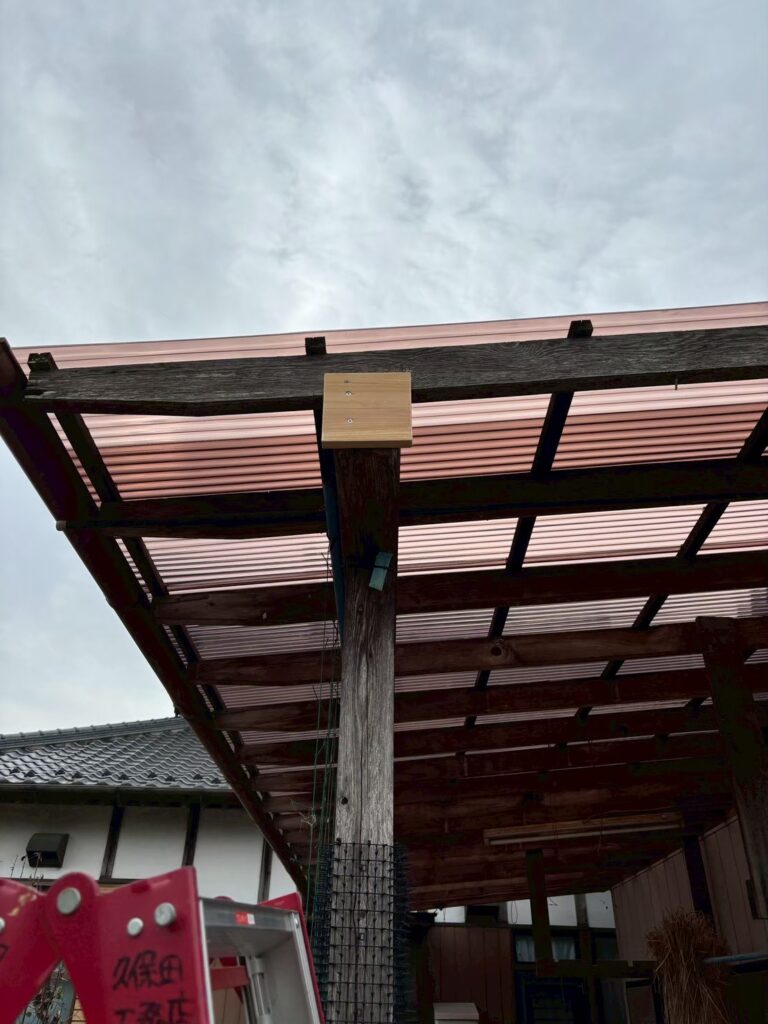 ビスや釘などを取り外し、下地をきれいに掃除してから新しい波板を取付ます。