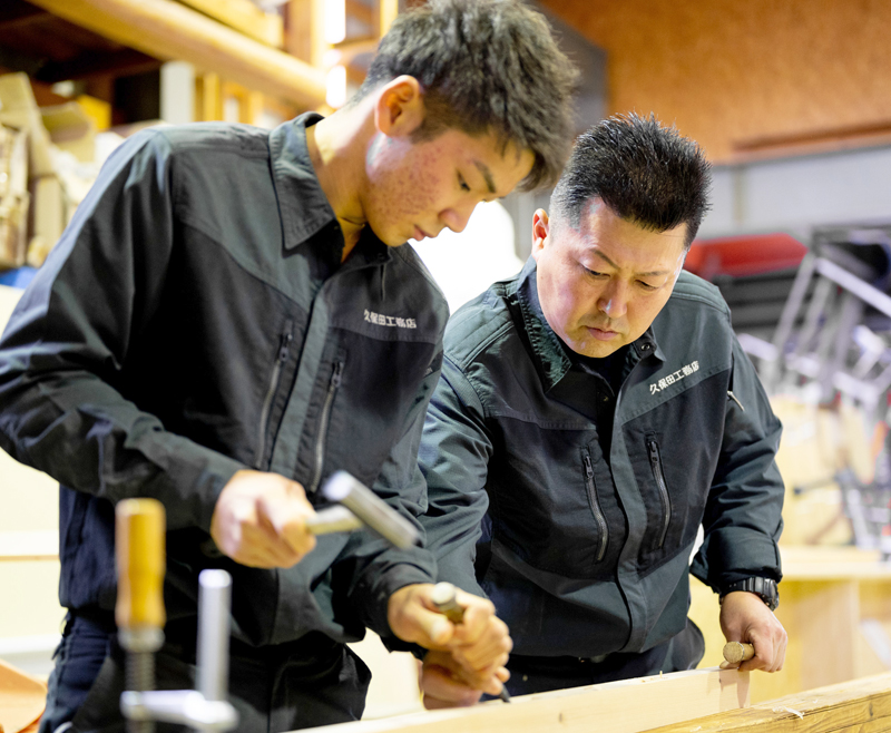 社長である松村博康は22歳で大工を志し、以降、職人気質を発揮し続け、独立してからも現場主義を徹底。自らの手でお客様の夢を叶えるという何ものにも代え難い喜びを、仕事を通して感じ続けています。社員には、しっかりと知識と技術を伝え、最強の職人集団であり続けたいと考えています。