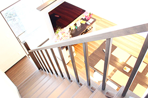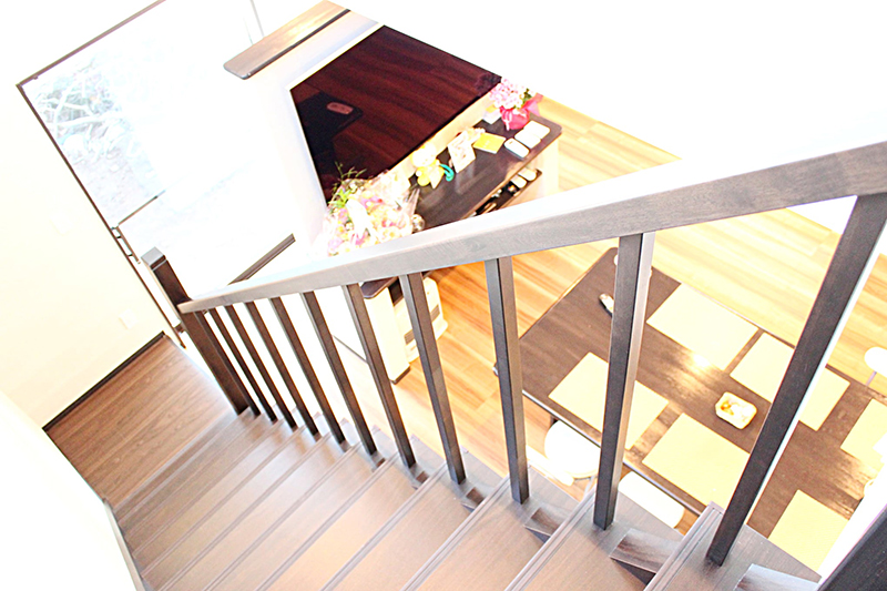 リビングに吹き抜け階段のある家